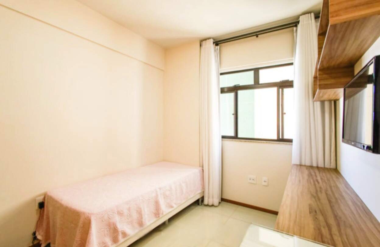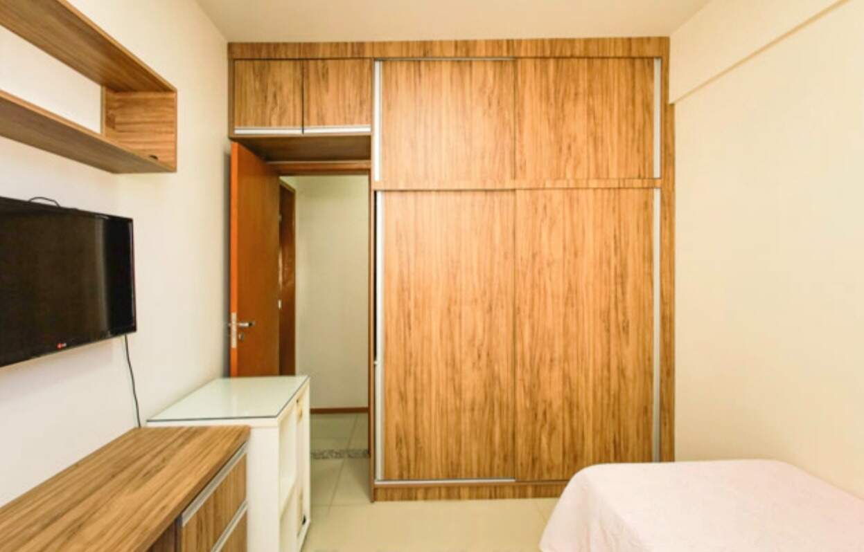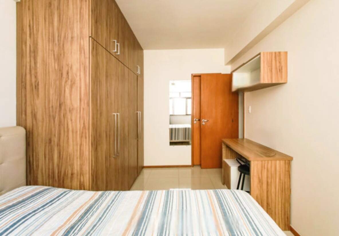 São dois quartos, sendo uma suíte. Ambos são espaçosos, bem iluminados e decorados com muito bom gosto. Roupeiros embutidos fornecem amplo espaço para armazenamento. A sala é para dois ambientes e conta ainda com uma varanda privada, ideal para relaxar e apreciar a vista do morro do cristo.