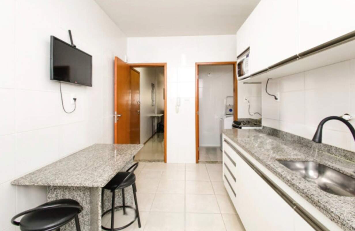 O apartamento possui 94 m² de área interna com acabamento impecável em porcelanato. A sala de estar é aconchegante, equipada com móveis modernos e confortáveis, perfeita para momentos de descanso ou para receber visitas. A cozinha planejada conta com armários espaçosos e todos os eletrodomésticos necessários.